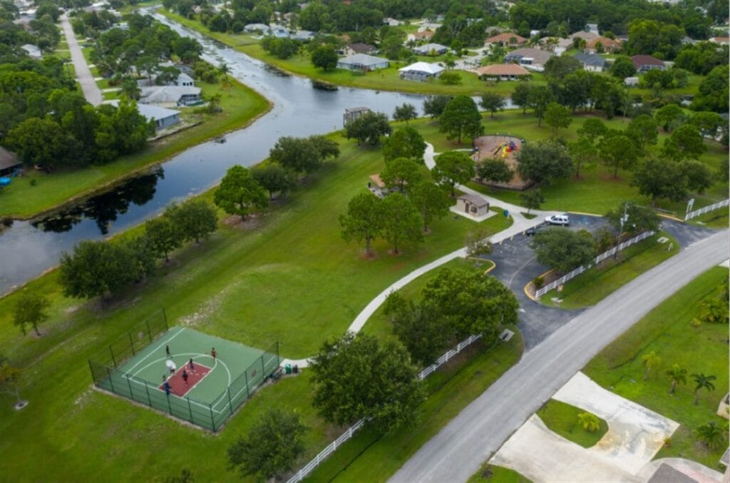 The park also features an observation and fishing deck along Buttonwood Waterway. Visitors can fish from the deck or enjoy the water views. Alongside the waterway, stationary fitness equipment allows for outdoor exercise. ADA-compliant restrooms ensure accessibility for all visitors. The park is unmanned and gated, allowing guests to visit at their convenience.