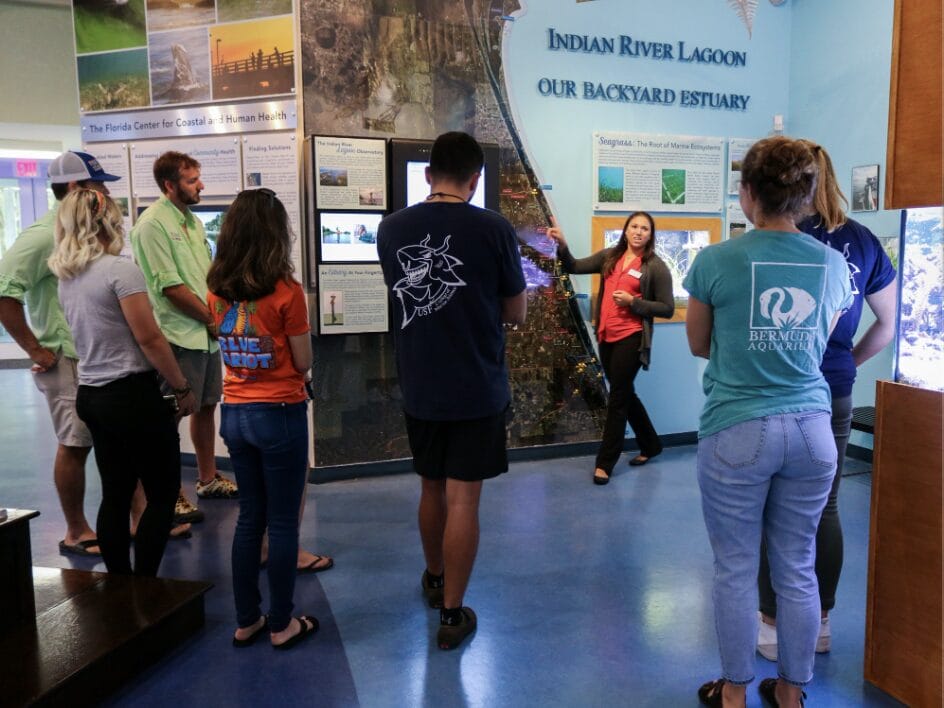 A history exhibit traces major discoveries made at Harbor Branch over the past five decades. Rotating displays highlight current research topics, including marine debris and conservation initiatives. A student information station introduces visitors to graduate research and education programs across FAU. The center connects the public with active research and emphasizes conservation through science and education.