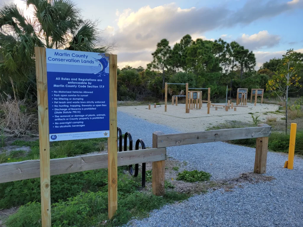 The preserve includes an access road, parking area, picnic pavilion, outdoor exercise stations, and a shaded bench structure. Furthermore, visitors can explore both a flat shell-rock trail and an unimproved scrub ridge trail. These routes allow for close observation of native vegetation and wildlife typical of scrub communities. The preserve remains a local resource for passive recreation, environmental education, and long-term habitat protection.