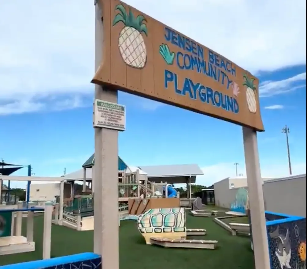 The Jensen Beach Community Playground, located at Jensen Beach Elementary School, is a large public park built by community volunteers in 2014 and renovated in 2024. The playground is available for use after school hours and on weekends. It features two separate areas: one designed specifically for children ages 2 to 5, and a larger section with a variety of slides, bridges, climbing features, fireman’s poles, and a rocket ship. There is also a basketball court and restrooms on-site.