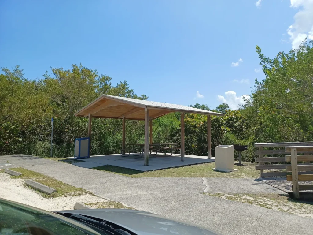 Visitors can use the boardwalk, which leads to a fishing and kayak launch area. The boardwalk passes through stands of red mangroves and gives access to views of the lagoon’s fish, birds, and plant communities. A small picnic shelter with a grill and table is available, and it supports simple cookouts or a packed lunch. The parking area holds about ten vehicles, and the park remains easy to access for short visits.