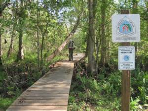 Kitching Creek Preserve is a 51-acre nature area in Hobe Sound. It provides access to a canoe and kayak launch, a paddling trail, and a pathway around a restored lake system. The preserve is popular with equestrians, dog walkers, bird watchers, and fishing groups. It also supports a wide range of wildlife, including alligators, otters, raptors, and numerous wading bird species. Several listed species such as wood stork, roseate spoonbill, little blue heron, bald eagle, and osprey regularly forage throughout the site.