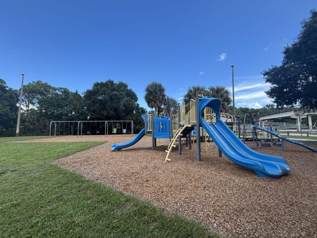 Mary Brogan Park in Stuart, Florida, is a community-oriented park offering a variety of recreational amenities for various ages. The park includes a basketball court, a playground with slides and swings, a picnic area with tables, and a popular skatepark. The park is accessible with wheelchair-friendly entrances and parking. Public restrooms and water fountains are available for visitors and the park opens at sunrise.