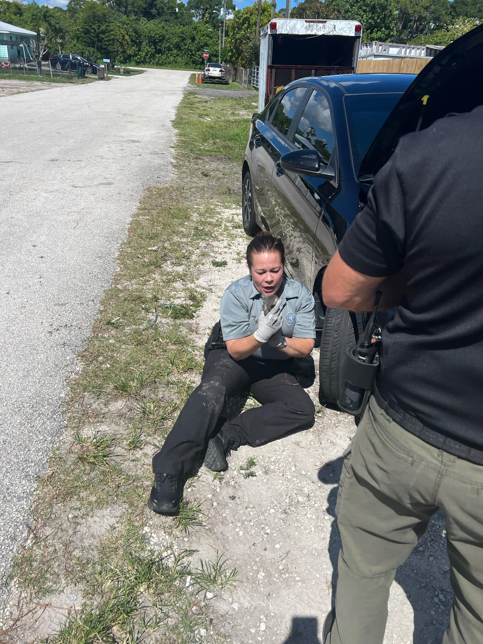 The bird was reported to have fishing line and a bobber wrapped around his body. MCSO Officer Tabitha Queen returned to the area where the pelican was located and made several attempts to catch it, but it was mobile enough to get away at every turn. Then came Rusty, who used his cast net skills to help us catch the pelican, bring it to safety, then remove the fishing line. The only problem, the pelican seem to really like Rusty—and it was hard to say goodbye. Thank you Rusty and Officer Queen for never giving up.