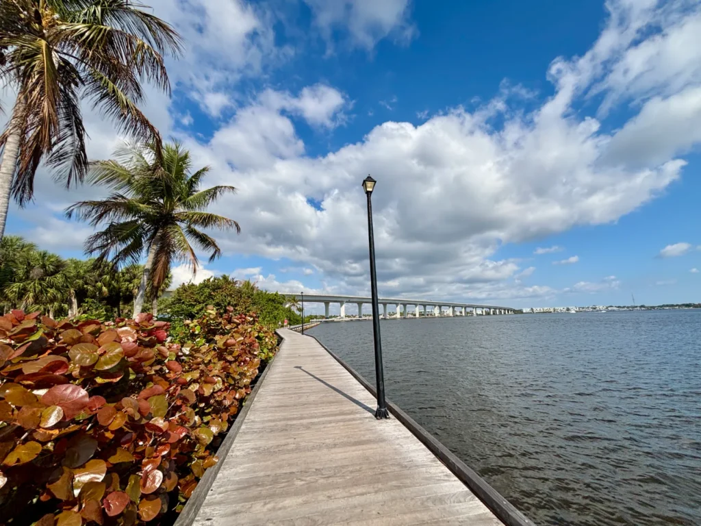 The downtown Stuart Riverwalk is a short, easy walk along the St. Lucie River. The total length is under half a mile.