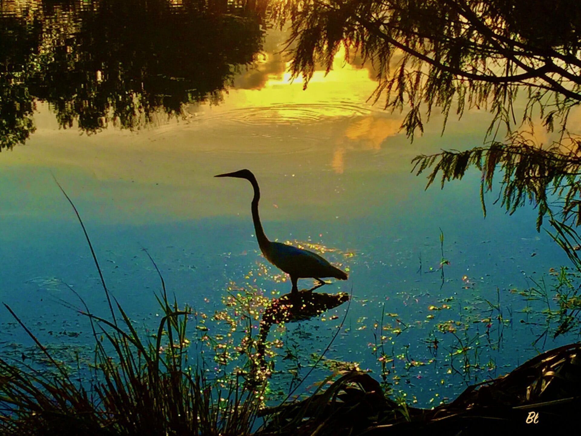 - Heron at Sunset by Blandina Suba